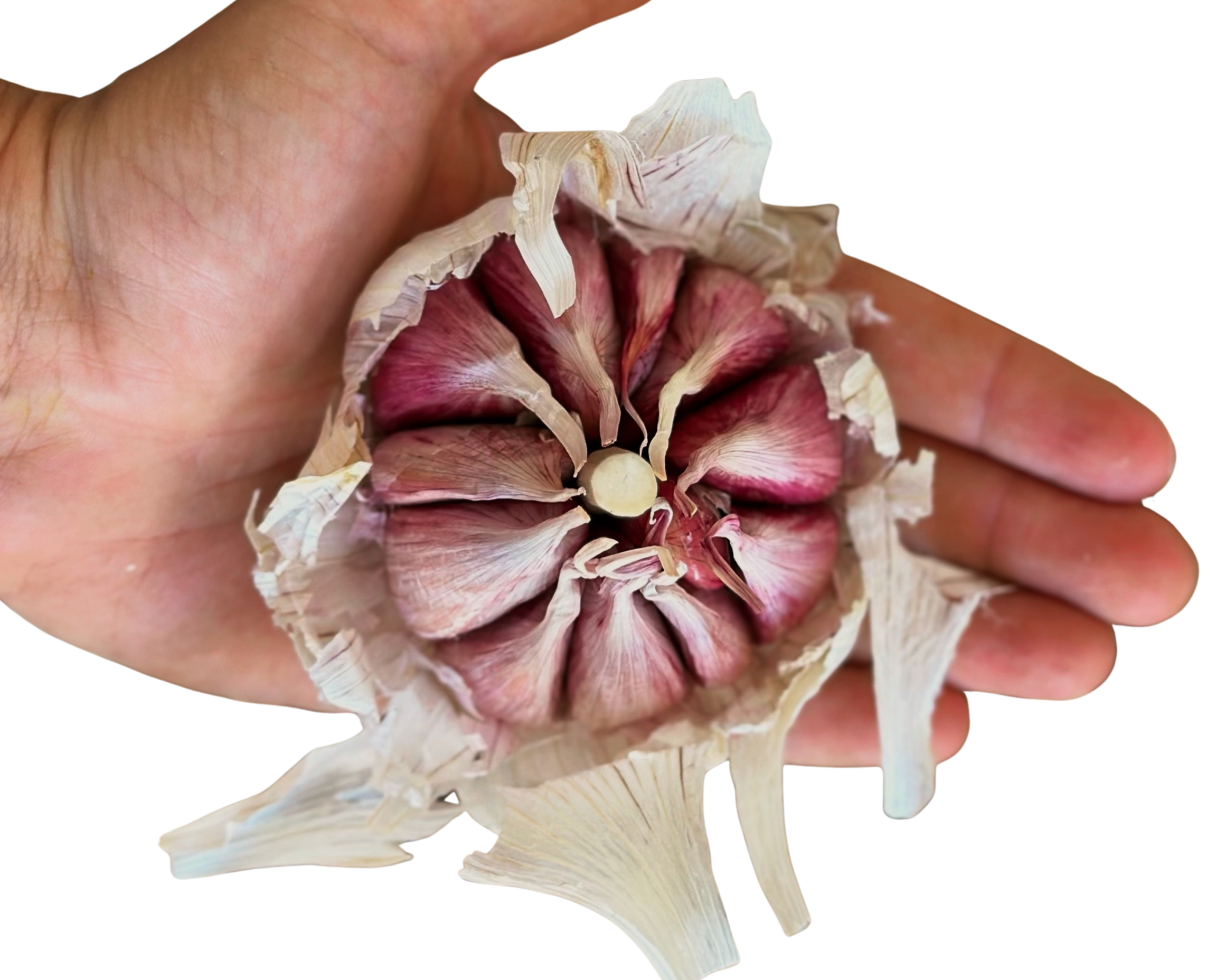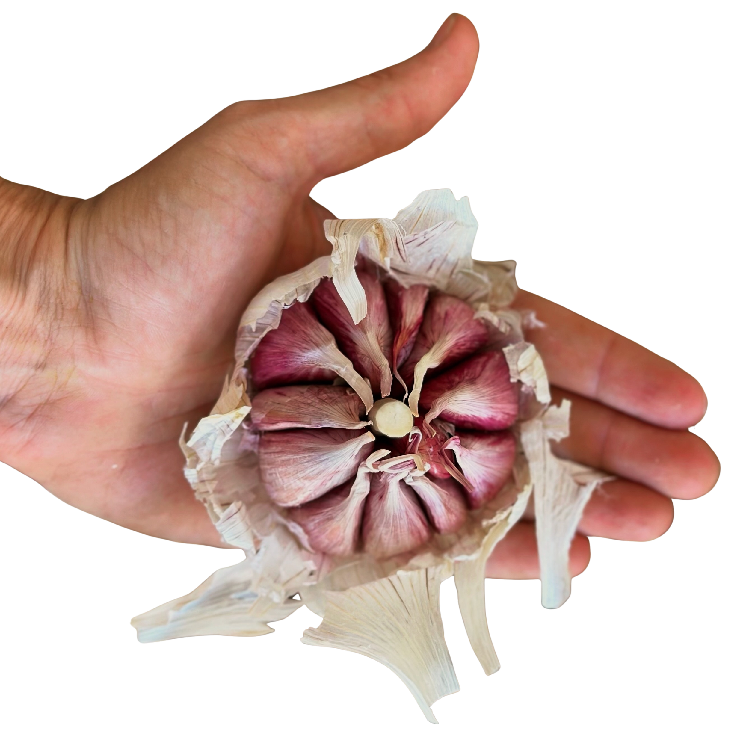 A garlic braid isn’t just a bundle of garlic—it’s a piece of art. Each braid is carefully hand-crafted, showcasing skill and attention to detail. A truly beautiful and unique item for your kitchen or as a gift. Our garlic braids are both decorative and practical: the bulbs can be eaten, or if left untouched, they will dry down into a long-lasting display piece.