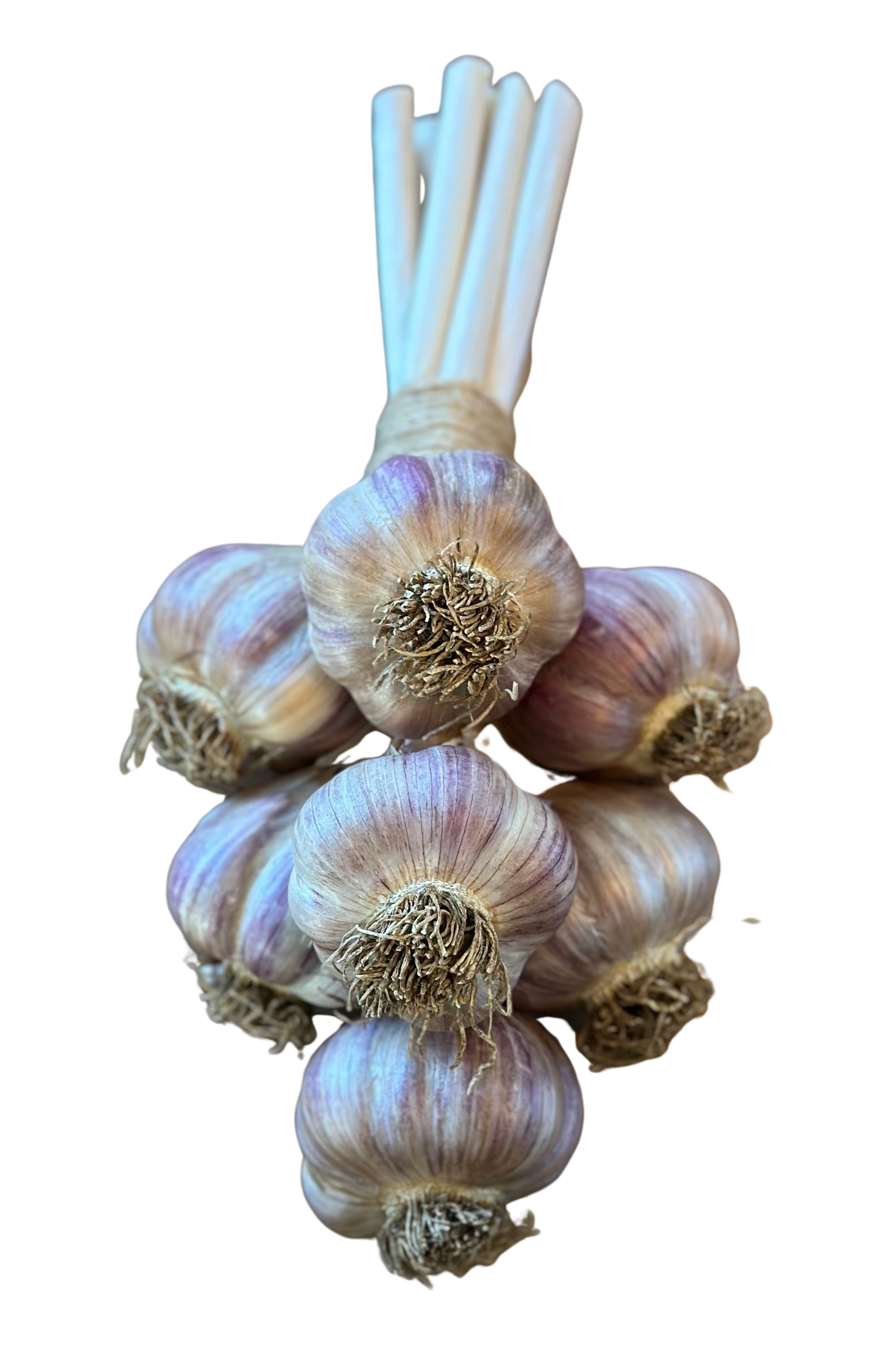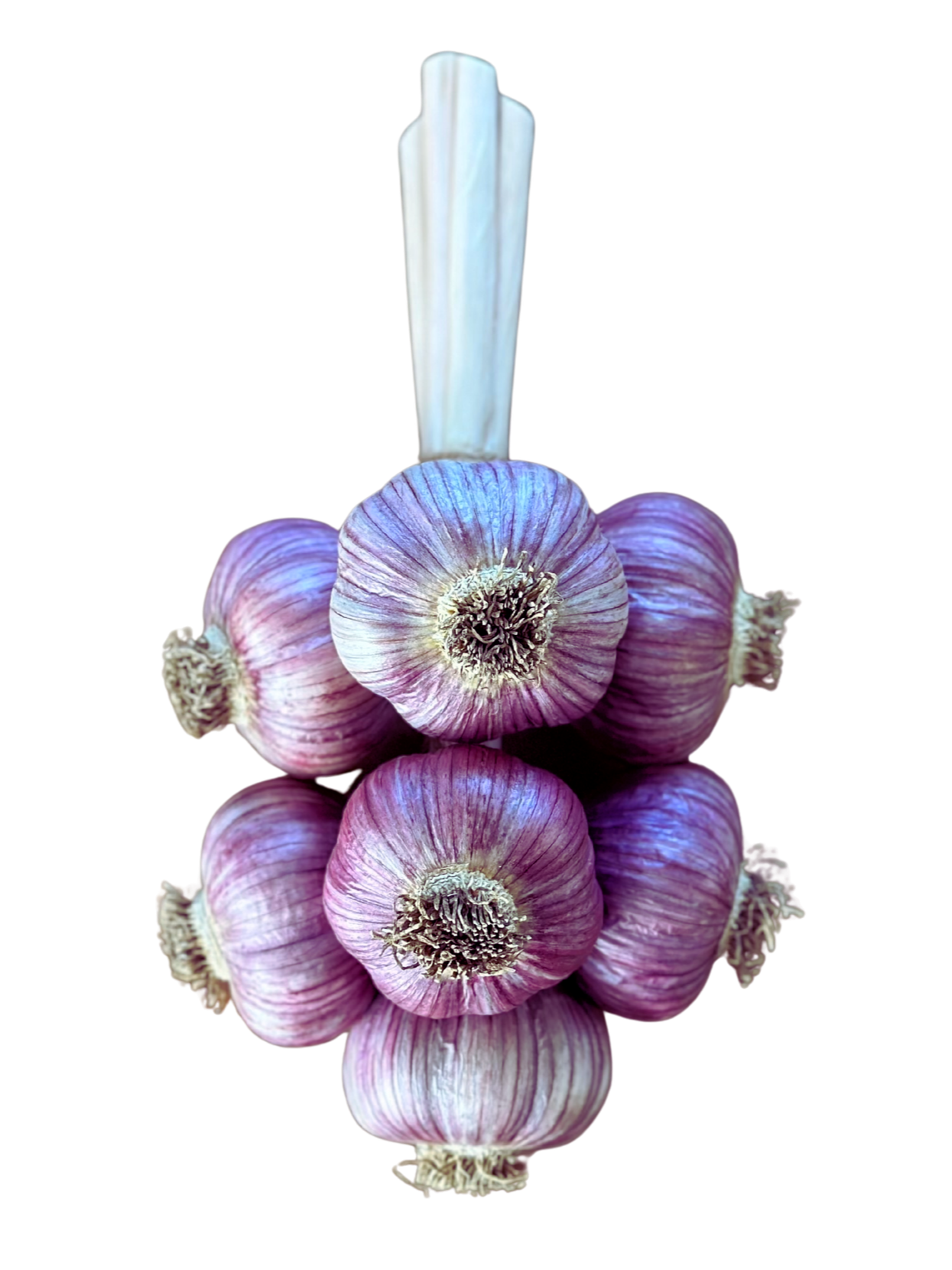 You will receive a braid similar to the one pictured. Please note that hardneck varieties are not actually braided due to their hard stems, but instead sturdily twine-wrapped in the French manouille style.